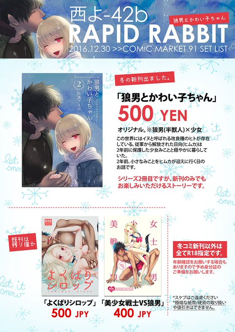 #冬コミ告知 久遠アユム個人サークル「Rapid Rabbit」金曜日 西よ42b に配置されています。 狼男×かわい子ちゃん♡年の差+同居+ちょいH♡ #創作男女 ラブコメ https://t.co/DZ7boazDbz #C91WebCatalog