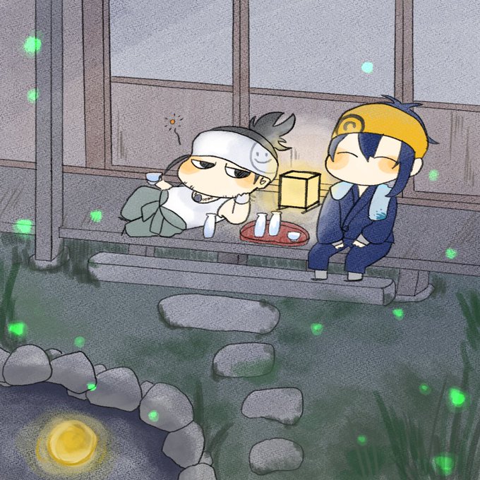 おまたせしました!リクエストで「三日月、日本号コンビ」です!月見酒で大人なふた振りです🥰私も加わりたーい!😂笑 リクエストありがとうございました!💕