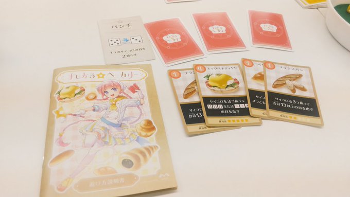 まじかるベーカリー TLでよく見かけるし、ゲムマでバック配ってたのでやってみた。絵柄とは裏腹に社会の縮図で働いたら負けということを学べる。ゲームの本質がわかると楽しいwダイスロールはおまけ(確信)