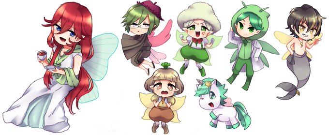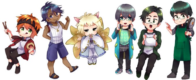 お誕生日イラストのちびキャラ、せっかく全身描いたので…_(:3 」∠)_ しらいさんといっしょ①、しらいさんといっしょ②、しらいさん2016、しらいさん'sフェアリル って感じです