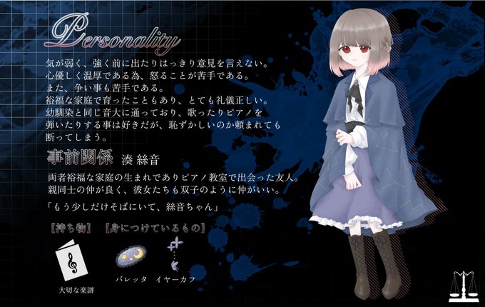 枷酉麗(14) 落ち着いた雰囲気の可憐な少女。心優しく、誰に対しても分け隔てなく接する。 #空白_CS