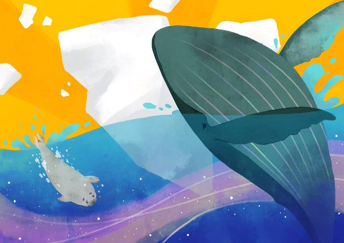 柔らかなタッチと華やかな色使いはまるで宇宙の海を泳いでいるようです🐳🌕