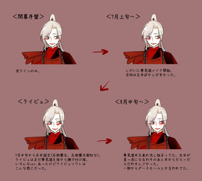 実は私も、昔の絵に触発されて蘭兵衛さんメイク変遷をざっとまとめてた…もっともっとver.あったけどひとまず大まかにはこんな変化だったなぁって。