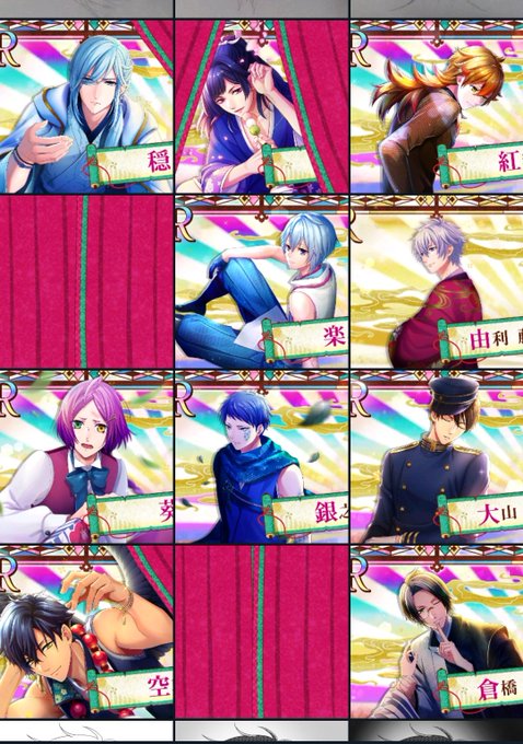 あやかし恋廻り、もっかい始めたー 最初に引けるガチャ何回も何回も引き直して、好きそうな人当てそうとしたけど、結局30回ぐらい引いたねw イケメンばっかだからスクショしてたら下手くそすぎた図↓