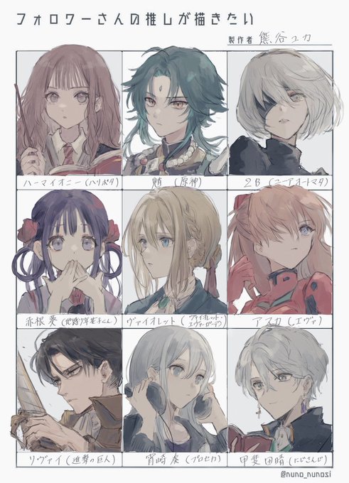 できました! みなさんの好きなキャラはいるでしょうか…? #フォロワーさんの推しが描きたい