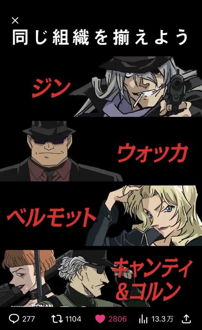 #黒ずくめの謀略参戦 真っ黒〜!!! ベルモット美しい、、