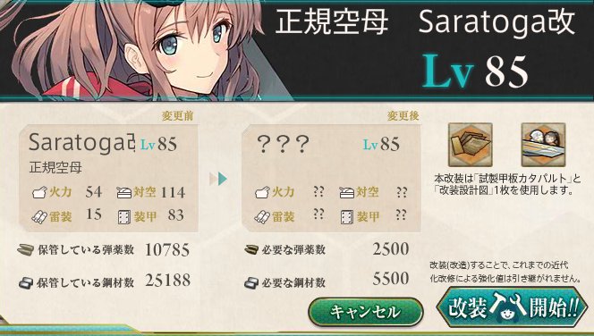 月変わりで設計図確保したんで瑞鶴の時みたいに改→改二→改二甲 って一気に改装。鋼材と弾薬と毛根が吹き飛びました