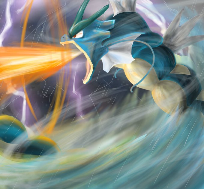 ギャラドス!はかいこうせん撃ってます! もう少しうまく描きたかったかな…(´・ω・`) #ポケモン #イラスト