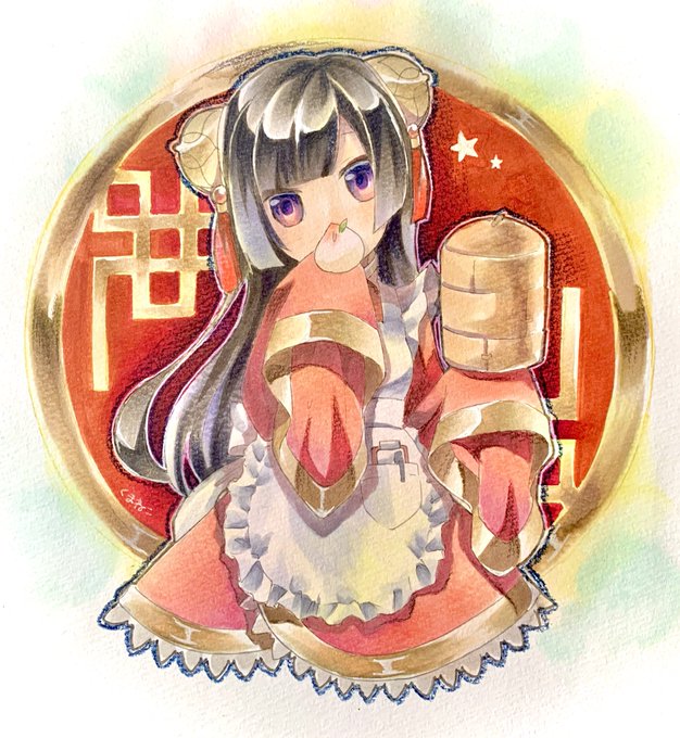 チャイナ風メイドちゃん🐼 #コピック #オリジナル