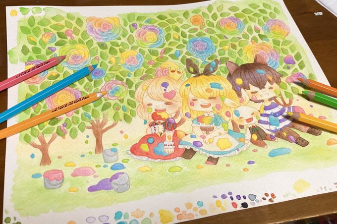 色鉛筆でカリカリ塗ってくのが好きです!!