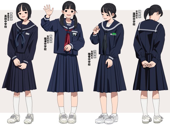 冬は手結びの紺スカーフが特徴の平線2本関東襟セーラー服で、夏は青森市標準服(角襟ブラウス・吊りスカート)でした。
