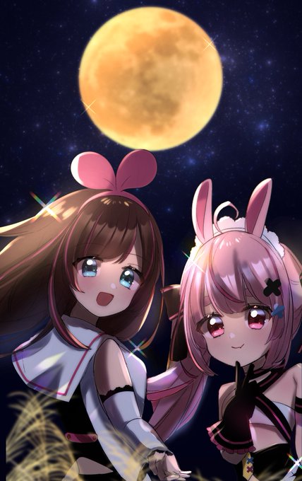 月を見上げ幸せそうなラヴィット🐰🌕 #十五夜 #きずなーぽすと #まりあーと