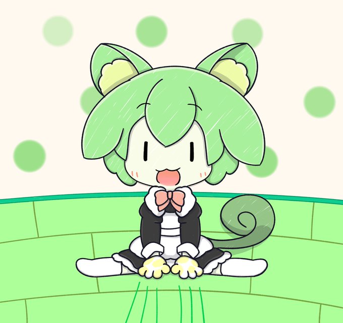 #ずんだもん #猫の日 おすわり姿とかねこみみメイドとかいろいろ混ぜた結果 背景は… あきらめたのだ…
