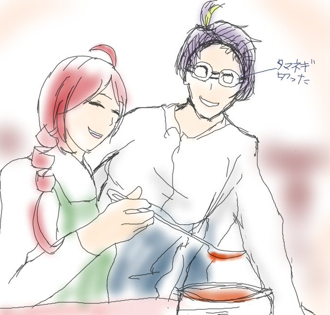 #まぐりん版真剣お絵描き60分一本勝負 @MaguRinW まぐりんワンドロ初参加しました…! 「結婚」後の共同作業的な夫婦まぐりんで!ミネストローネ作ってます!!(と言い張る) まぐろ君が若干ギャグですね!!!😎