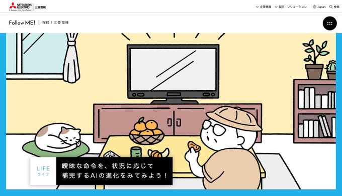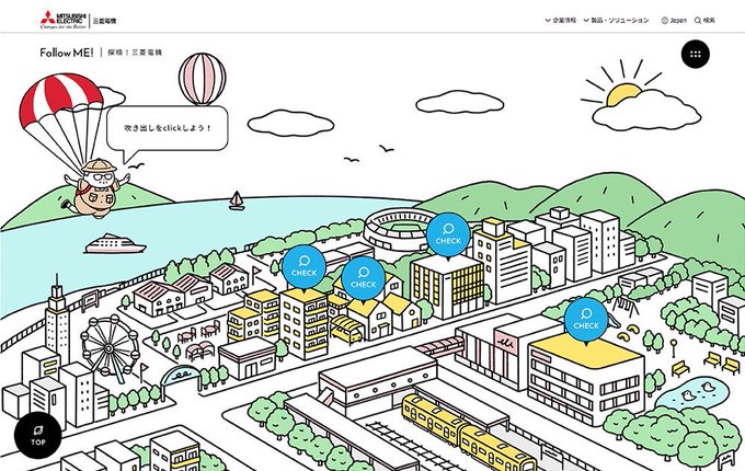 【おしごと】 三菱電機 WEB技術紹介サイト「Follow ME!」全体のイラストを担当しました🌏 キャラクターから背景とたくさん描いてます!おじさんが飛ぶ!動く!楽しいサイトになっているので是非見てみてください🚗 https://t.co/MZG68xwhH2