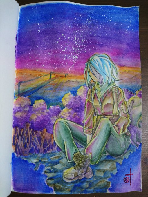 #皆さん線画と塗った後を見せてください アナログとデジタルと