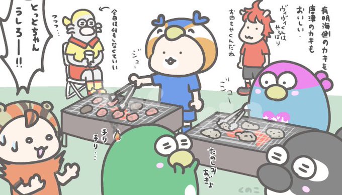 炭火焼きパーティー☺️💕 「#23時の佐賀飯アニメ 」を観て牡蠣焼を食べたくなりました✨ #ウィントス #とっとちゃん #ヴィヴィくん #ギラン #グランパスくん #レノ丸 #ロアッソくん