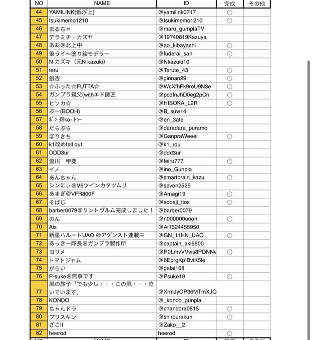 リストご確認お願い致します🙇♂️