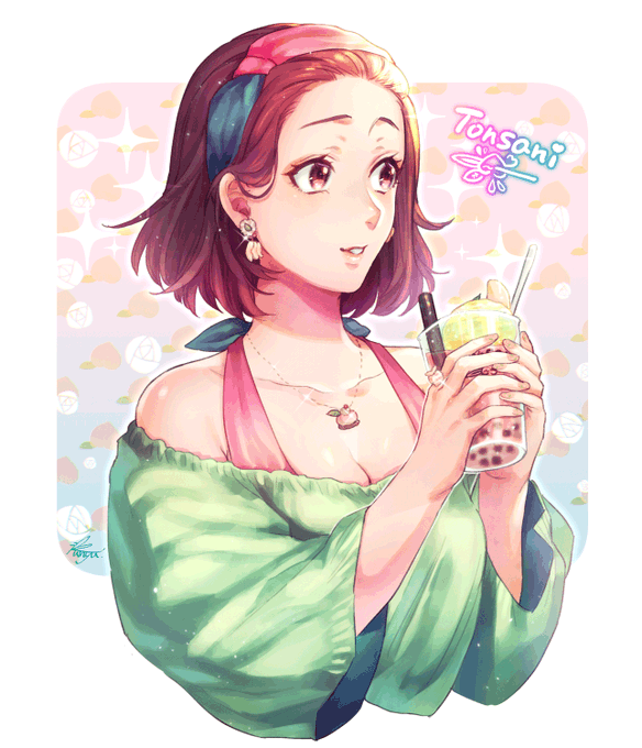 とんさにわちゃん描き終わった… 桃アクセいっぱいつけてもらった🍑 キラキラ~~✨