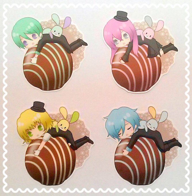 ☆新作ステッカー☆ レプラート&チョコレート Honeypotのオリキャラのうさぎとその擬人化のコ達がトリュフチョコの上に乗っています。 #オメホリ