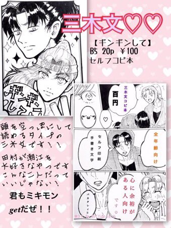新刊と既刊の詳細ですヽ( ´ ▽ ` )ノ 三木文とパペ滝(こへ滝)は初心者が手作りしたコピ本なのでいろいろ汚いです。すみません。