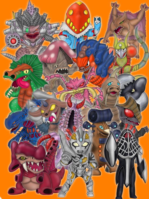 #今月描いた絵を晒そう ウルトラQの集合絵に加えてウルトラ怪獣を18体、ナヴィを2枚とマタンゴを描きました 終盤まで調子がでなかったので先月に比べてあまり描けてない感じがするけど、Qの分合わせたらそんなに変わってないかもしれない