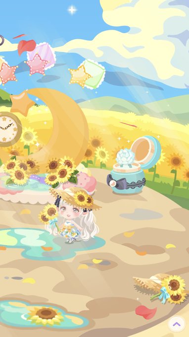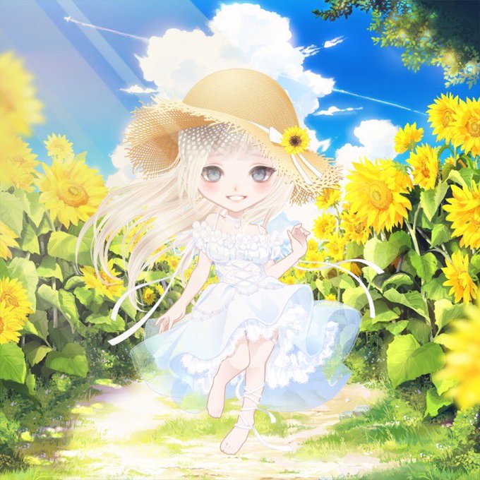 ポケコロツイン…ひまわりガチャが可愛かったので夏のお嬢さん妹🌻ちょうどシロツメクサの指輪があった!