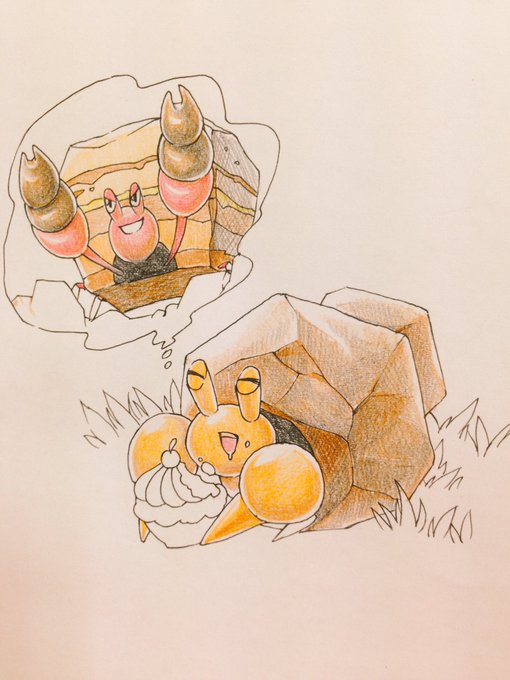 25分オーバーひええ…!左が1時間でやった分、右が完成です。でっかくなりたくてポフレいっぱい食べるイシズマイちゃんです。 #ポケモン版深夜の真剣お絵描き60分一本勝負