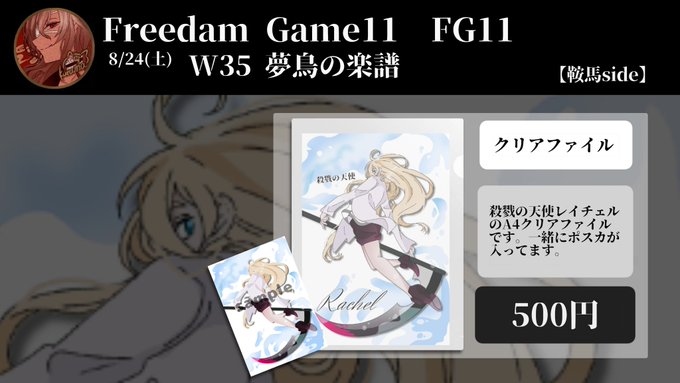 遅くなりました!8月24日(土) 東京流通センターで行われるFreedomGame11のお品書きです! スペースは合体参加でW35-36です!叶夢ちゃんと一緒に参加します! #お品書き #FG11