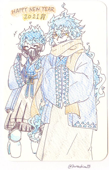 2021年描き初め和服シュラウド兄弟 何か描きたかったけどデジタル触る程の体力は無くアナログ雑描き ほぼワンドロ