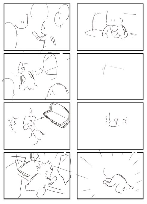 4p以上くらいになるとプロット(PC付箋が描きやすくて好き)→ページ割り→ネーム(デジタルでそのまま描いちゃう)→文字配置→ネームに補足する形で下書き→ペン入れ