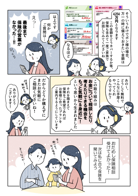 ファイナンシャルプランナーに顔出し無・匿名・無料でオンライン相談できる #ニッセイ 【 #おためし保険相談 】の紹介マンガを描きました🥳