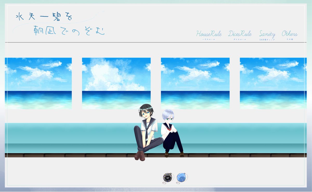 CoC/水天一碧を朝凪でのぞむ。 KP:霧ヶ峰 PL/PC HO1:睡蓮 / 金海汐梨 HO2:呉葉 / 花尾晴虎 ※敬称略
