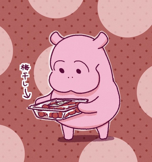 梅干しを見ただけで顔がギュッとなるカバさん #カバ #かば #イラスト #梅干し