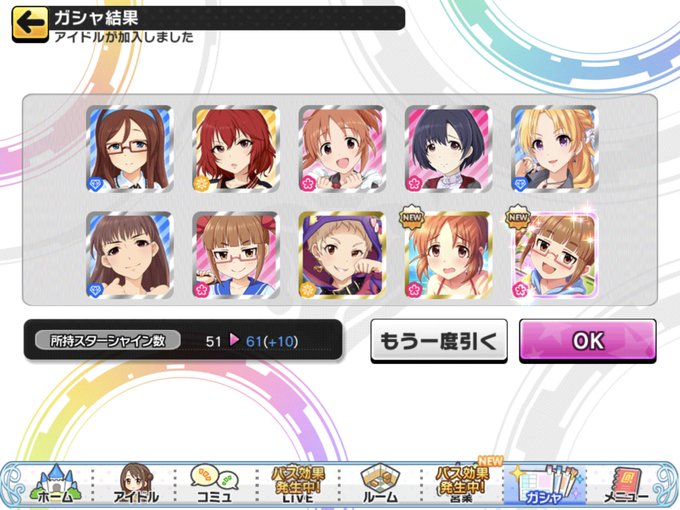 無償ジュエルが10連1回分貯まったんで回したら菜々さんSRにプレミアム晶葉お迎えです🤗 #安部菜々 #池袋晶葉