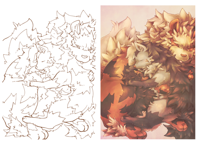 最近は線画残さないから昔のやつで… #皆さん線画と塗った後を見せてください