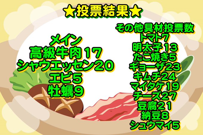 みなさんお鍋の具投票ありがとうございました!普通にめちゃおいしそうな鍋できそうでウキウキですw