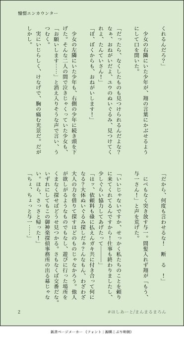 #ほしあーと 再掲。 そういや与一さん×ちびっ子の同人誌読みたいって言ってたけど、よく考えたらもう書いてたよね、っていう 「憧憬エンカウンター」①