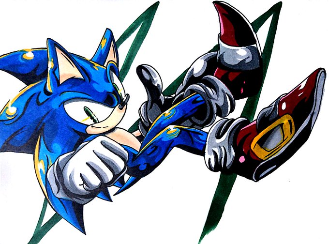 他にも、一枚目はこのアカウントで初めてソニックの誕生日を祝った時の絵だったり、二、三枚目は個人的に一等気に入っている絵だったり。アンソロに参加させていただいたときの絵も大変気に入ってます、ホントに貴重な体験だった…!!