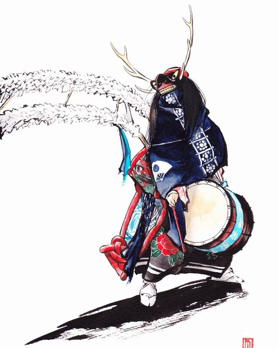 小狐丸 紙に墨、水彩 モデル: @kei0maru 絵:栗田