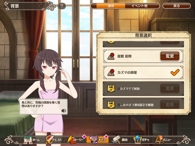 可愛い💕 でも、この衣装でカズマの部屋選択すると…うん、クズマになれますねぇ