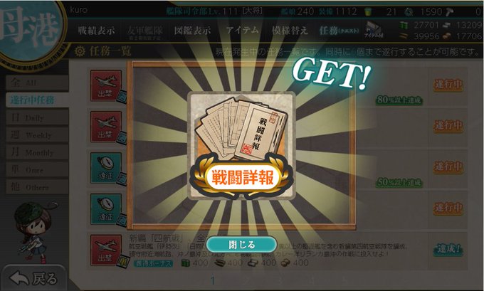 ようやく取れたわ・・・。3-5が一番の鬼門だった気がする・・・。 あと磯風もようやく改装。 あとはレーベ任務コツコツやらんとなぁ。