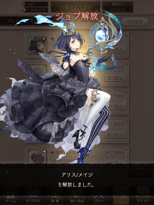 わーいアリスメイジー╰(*´︶`*)╯♡ ついでにミッション石で人魚姫来てくれた(´;ω;`) 今月ガチャでSS出なかったから半分諦めてたから嬉しい