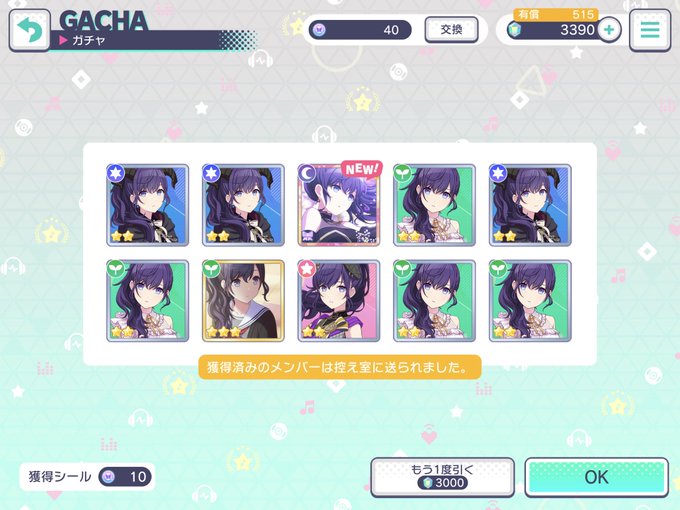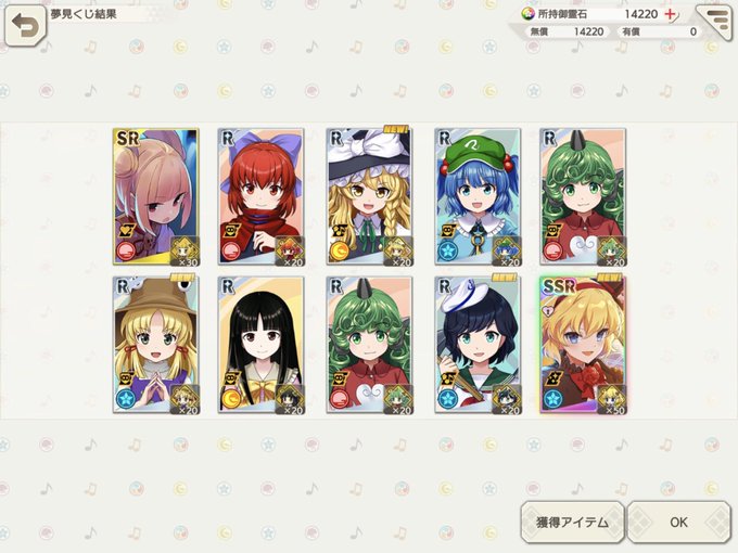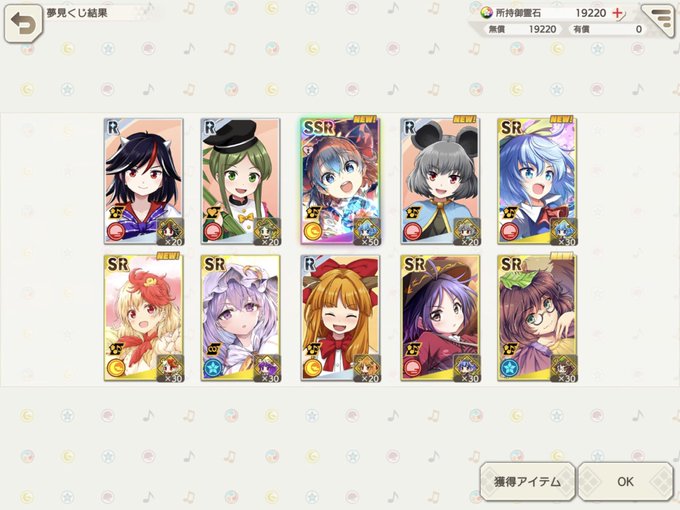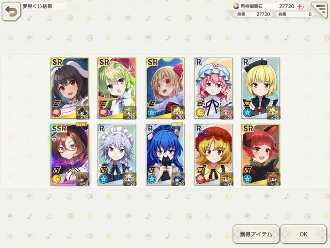 とりあえずハーフアニバーサリーのステップアップガチャは全部引き終わった!あやが最後の収穫!