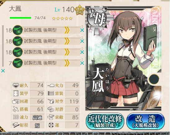 初期グラスキーなお話させていただいた際に未改造大鳳運用の提督さんがいらっしゃいましたので。