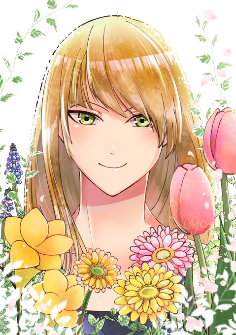花とキャラクターの絵。違った雰囲気になる💐 #彩度100にすると超派手