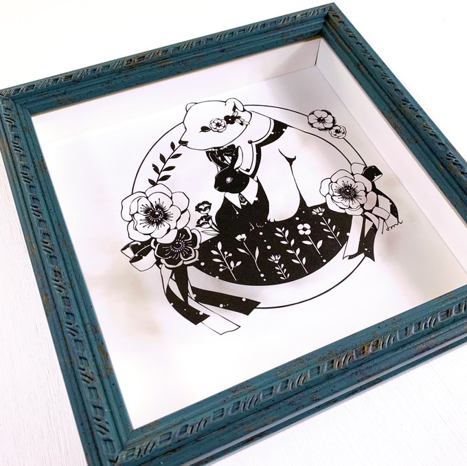 今年作の切り絵の中で1番自分の好み爆発してるお方。とりあえず好き。とにかく可愛い。かわい過ぎてグッズ展開でもお世話になってます。丸型コインケースとの相性が良い。かわいい←