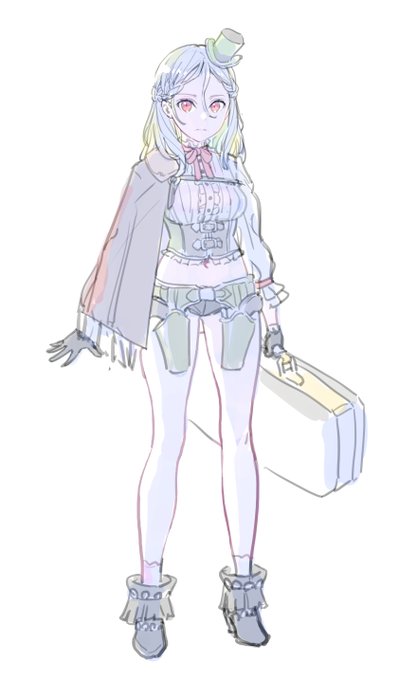 創作キャラデザイン落書き、少し前に描いたものの頭身をちょっと変えたラフ
