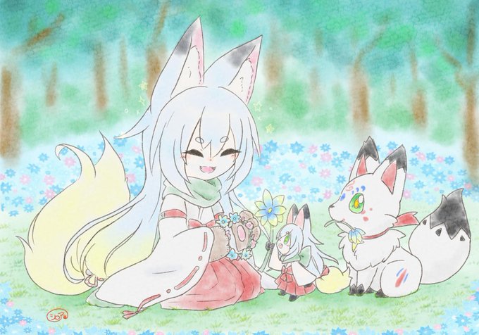 再上げ 過去に描いた 白星ちゃん(獣の姿)と懐大好き信濃くん