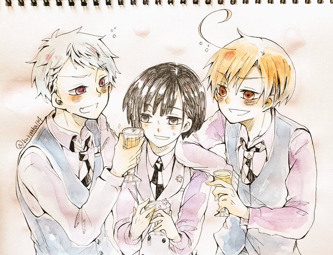 昨日描いた落描き〜 裏すーじくこの衣装で1度は描きたかった!!! フェリ「も〜〜〜兄ちゃん!菊に絡まないの!!」 √「…兄貴も止めないか…菊が困っている…」